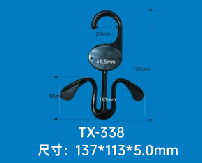 再生料挂钩又叫塑料挂钩,主要用于挂小产品,用一个铆钉固定在纸盒上面,也有直接用枪针通过小孔打入产品上,固定在产品上面,陈列在商场.